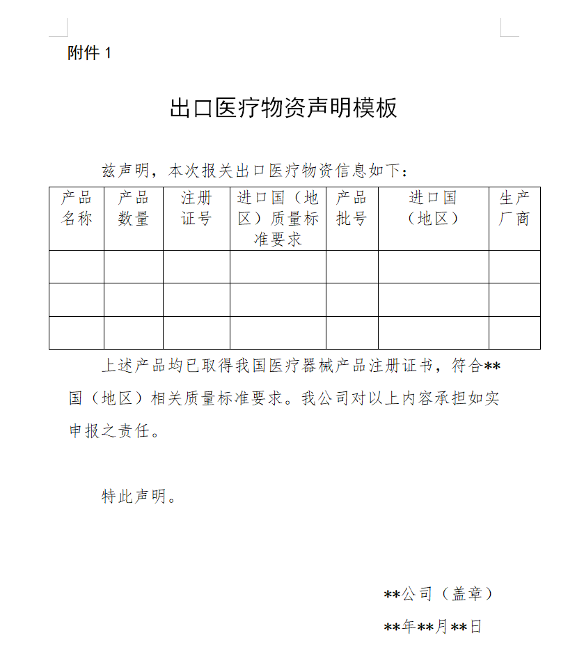 当前,全球疫情呈加速扩散蔓延态势。在做好自身疫情防控的基础上,有序开展医疗物资出口是深化疫情防控国际合作、共同应对全球公共卫生危机的重要举措。在疫情防控特殊时期,为有效支持全球抗击疫情,保证产品质量安全、规范出口秩序,自4月1日起,出口新型冠状病毒检测试剂、医用口罩、医用防护服、呼吸机、红外体温计的企业向海关报关时,须提供书面或电子声明.